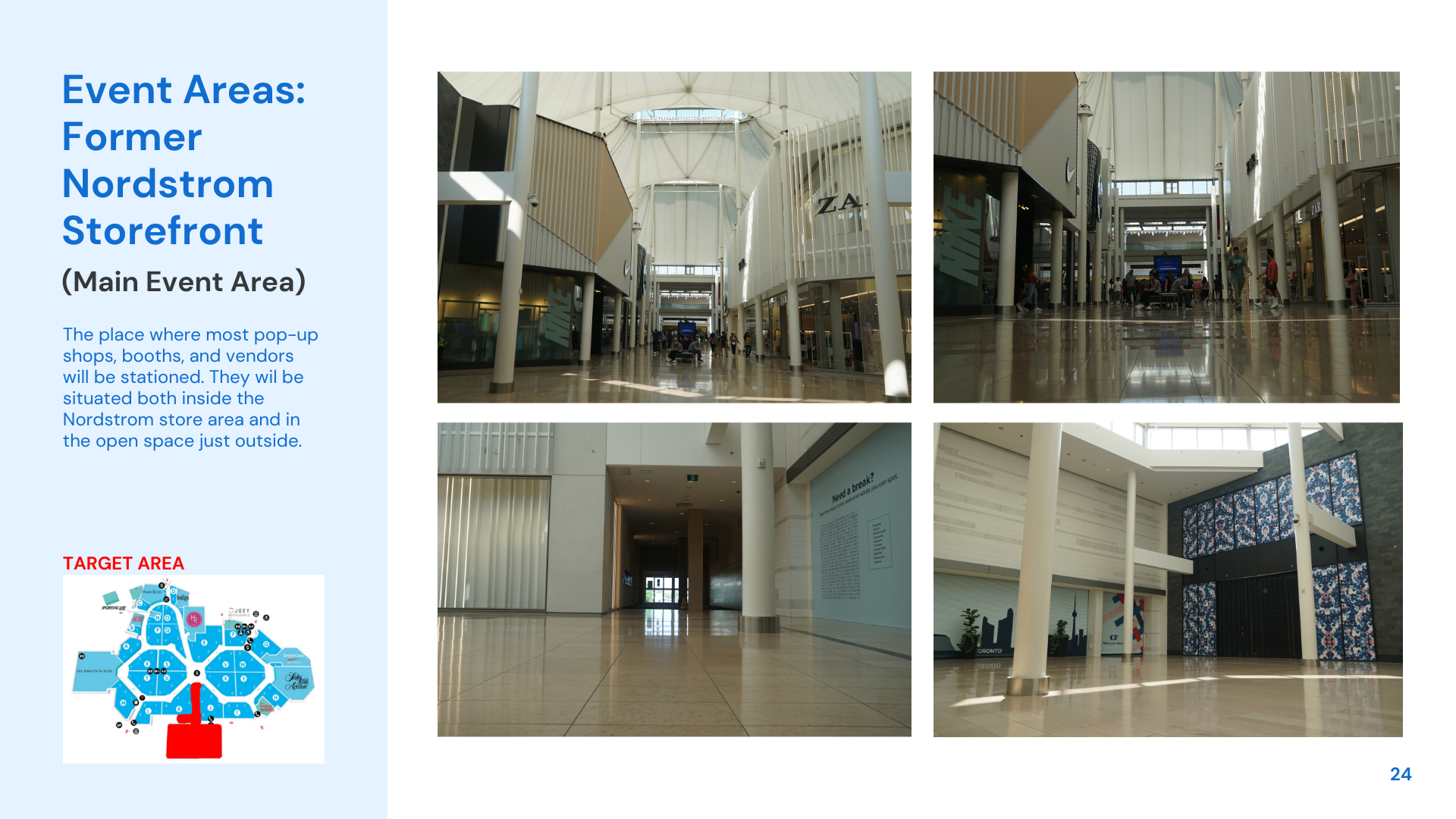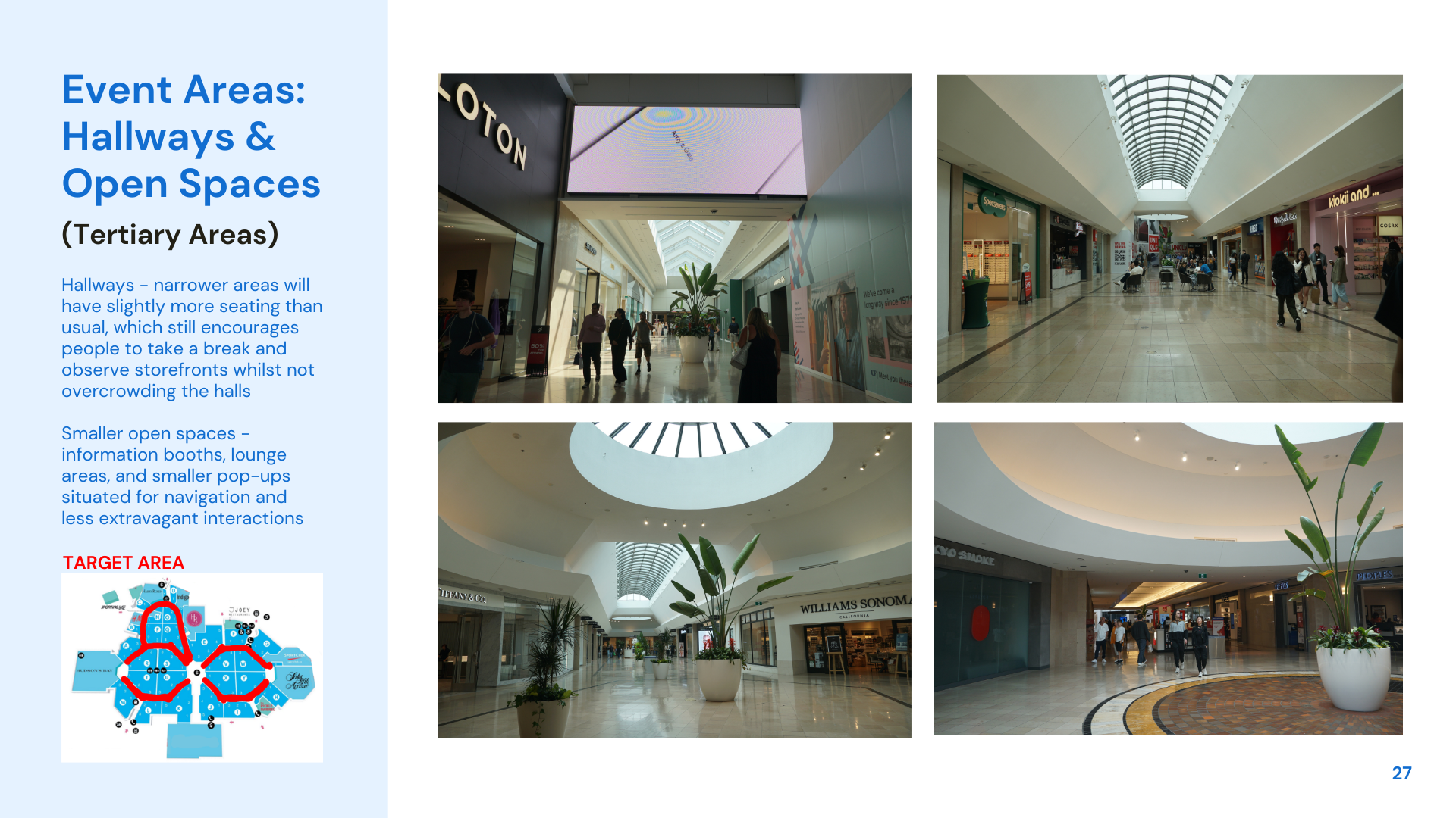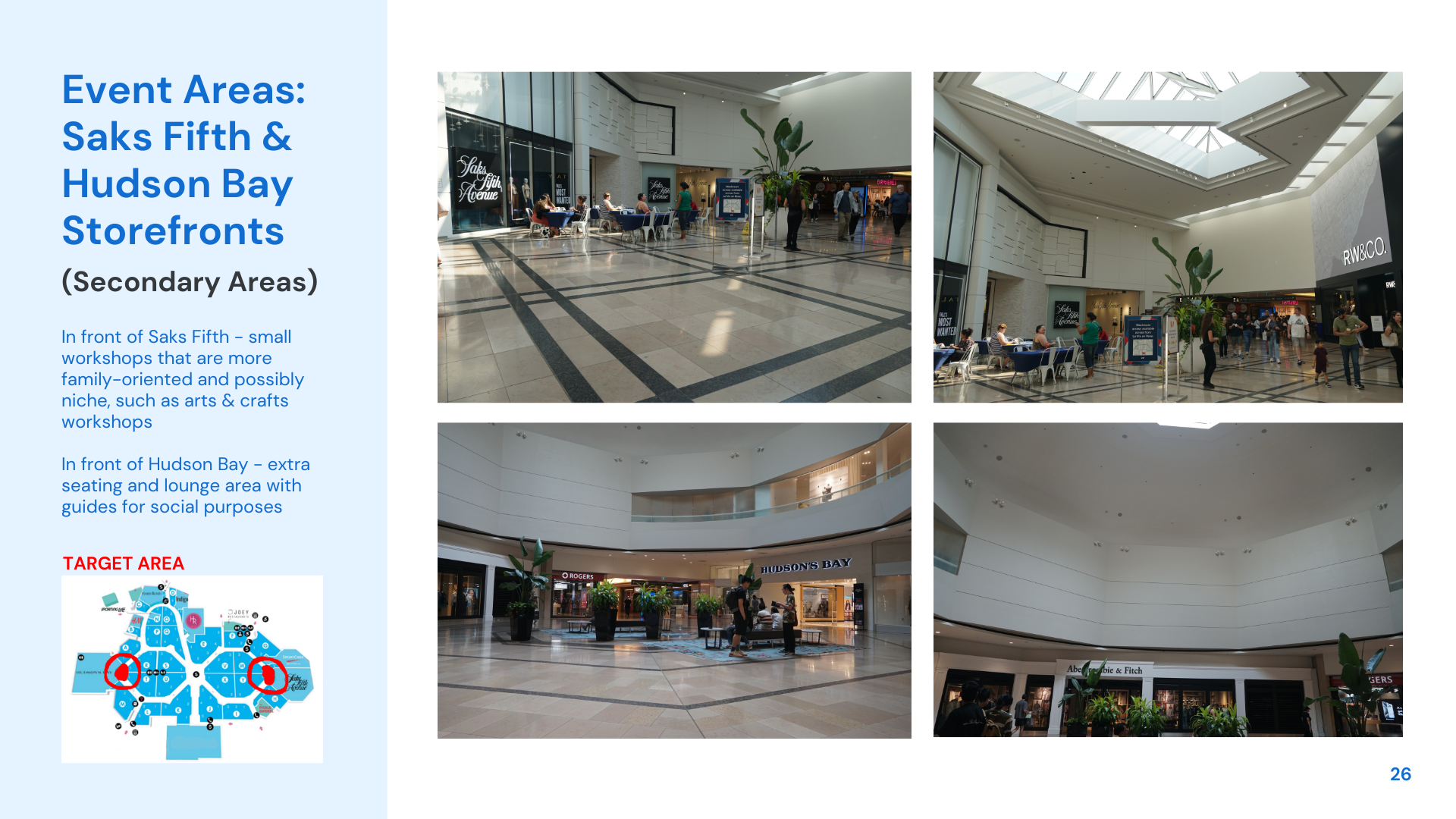 The program is designed to be simple and easy to use, turning the, currently low-traffic, mall into a go-to destination for events and a future hub for new Canadians moving into its adjacent planned developments. A mobile app was originally intended for the program, but was later scrapped in favour of a more accessible solution that accommodates for the older demographics of the target audience.